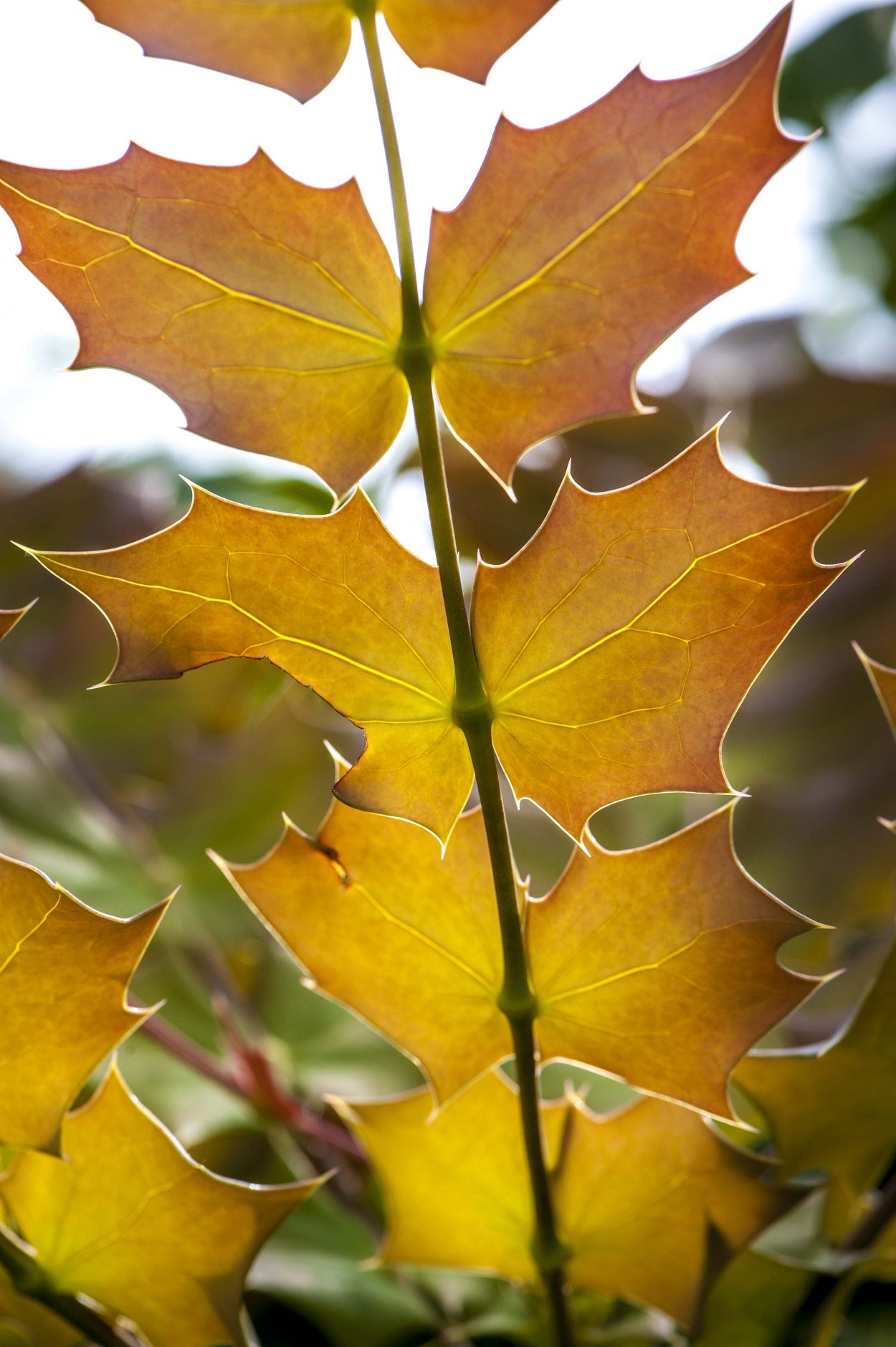 Incorporating gold into your landscape is one of 2017’s garden trends. Pictured: mahonia leaves. Photo by Brad Alston.