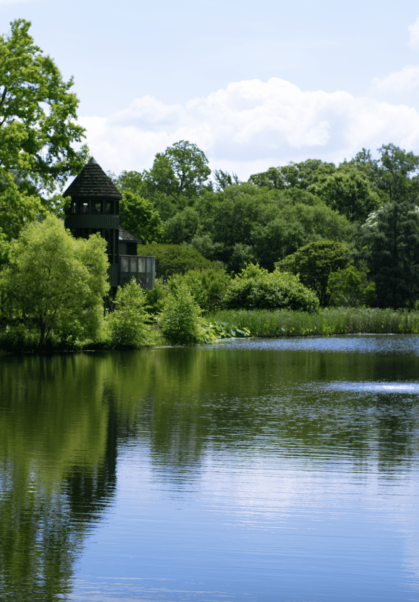 The beautiful Sydnor Lake is a central part of the Garden, providing nutrients and water to the surrounding gardens, fish, and of course, our turtles! You won’t miss the beautiful lake from your stroll down the Main Garden Path, where you will also get a view of the Klaus Family Tree House. If you go to the top of the Tree House, you will get a sweeping overview of Sydnor Lake and all the plants and wildlife that comes with it.