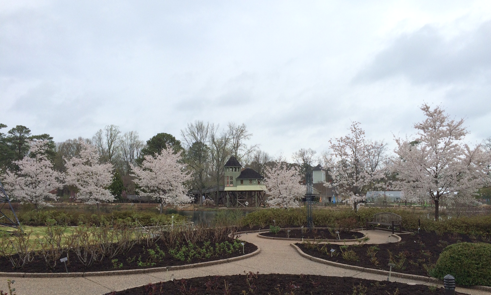 Cherry blossoms and the Childrens Garden Tree House