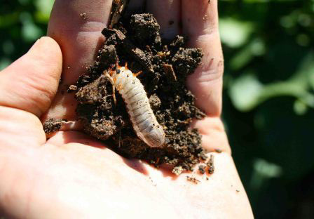 Insect-parasitic nematodes, or microscopic worms that attack insects, are another biological control option that can be used to treat white grubs in your lawn or garden. These nematodes are not to be confused with plant-parasitic nematodes that attack plants. These nematodes enter the insect host and transmit a bacterium that is only toxic to insects; it has no effect on birds and other mammals. Insect-parasitic nematodes are naturally occurring in the soil but can also be purchased. Steinernema carpocapsae and Heterorhabditis bacteriophora are two species of insect-parasitic nematodes that can be purchased. There is also a new strain of Bt (Bacillus thuringiensis) called Bt Serovor japonensis that has shown some success in treating June beetle larvae.