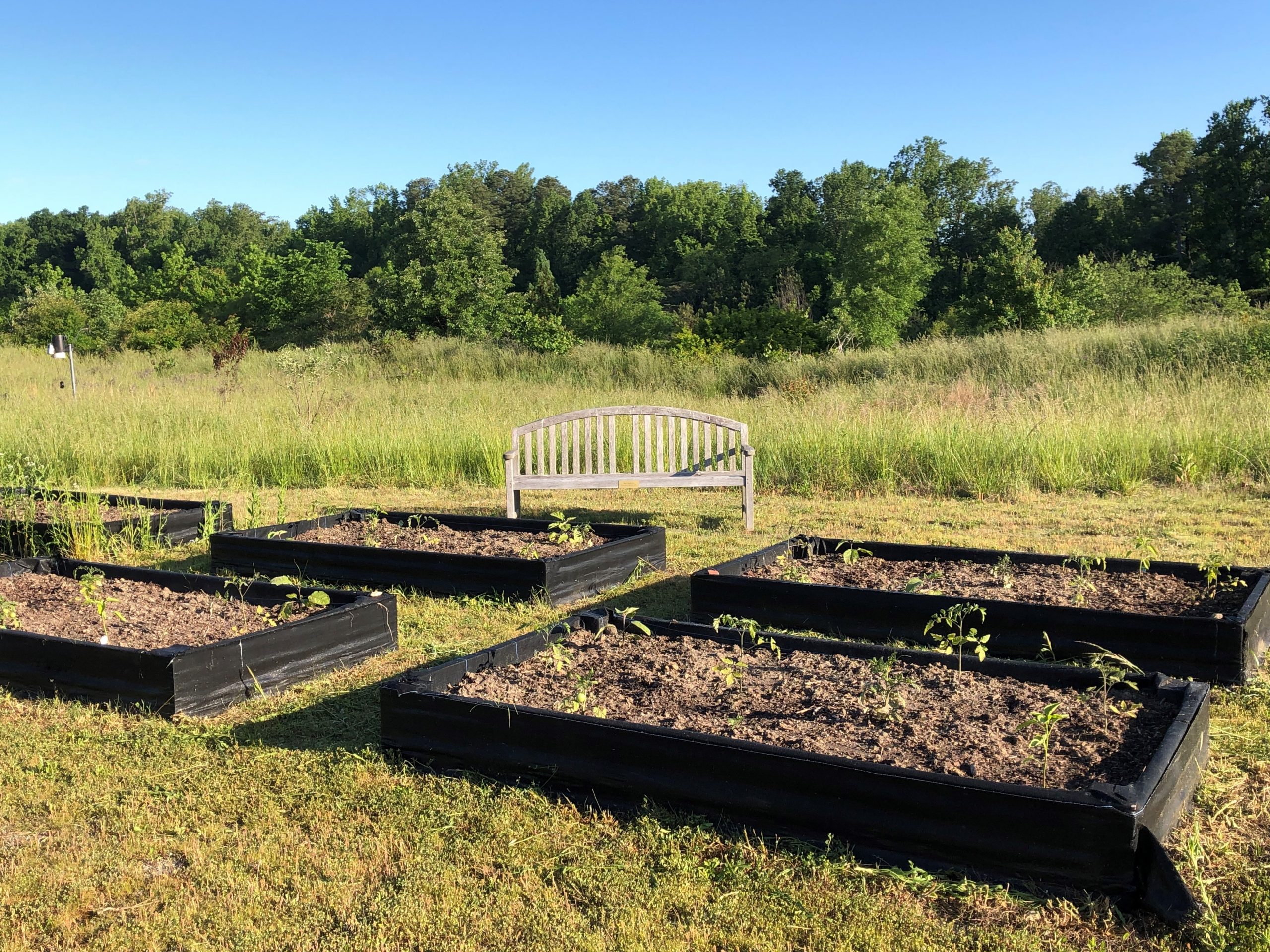 The seven raised beds in early spring. Plantings included tomatoes, peppers, eggplant and cucumbers.