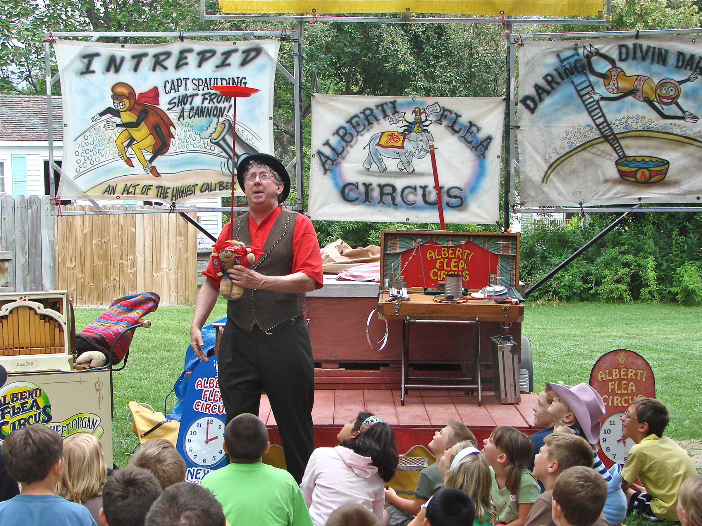 The Alberti Flea Circus, one of only a few flea circuses touring the country, traces its beginnings to the 1880’s. Jim Alberti learned the flea business from his grandfather, who in turn got the circus from someone even further back in the family. Many generations of children have discovered the wonder of flea circuses by seeing the Alberti Flea Circus.
