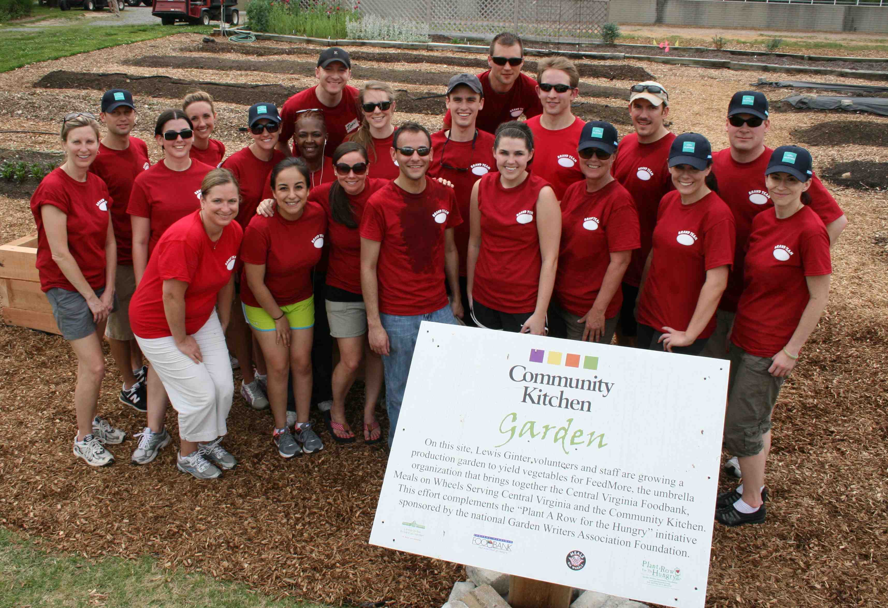 On Friday, May 4, 21 members of Altria’s PMUSA Brand Management team came to the Lewis Ginter Community Kitchen Garden to participate in a Day of Sharing. Led by Michael P. Goldman, the group split into three teams addressing the needs of specific sections of the garden. The team tackled substantial tasks to help continue the garden’s development, most notably the construction of four large raised planting beds in the wheelchair accessible section of the garden. In addition to improving the Community Kitchen Garden, the team wrapped up their Day of Sharing by completing several tasks in the Children’s Garden. Many thanks to this group for their hard work and tremendous results.