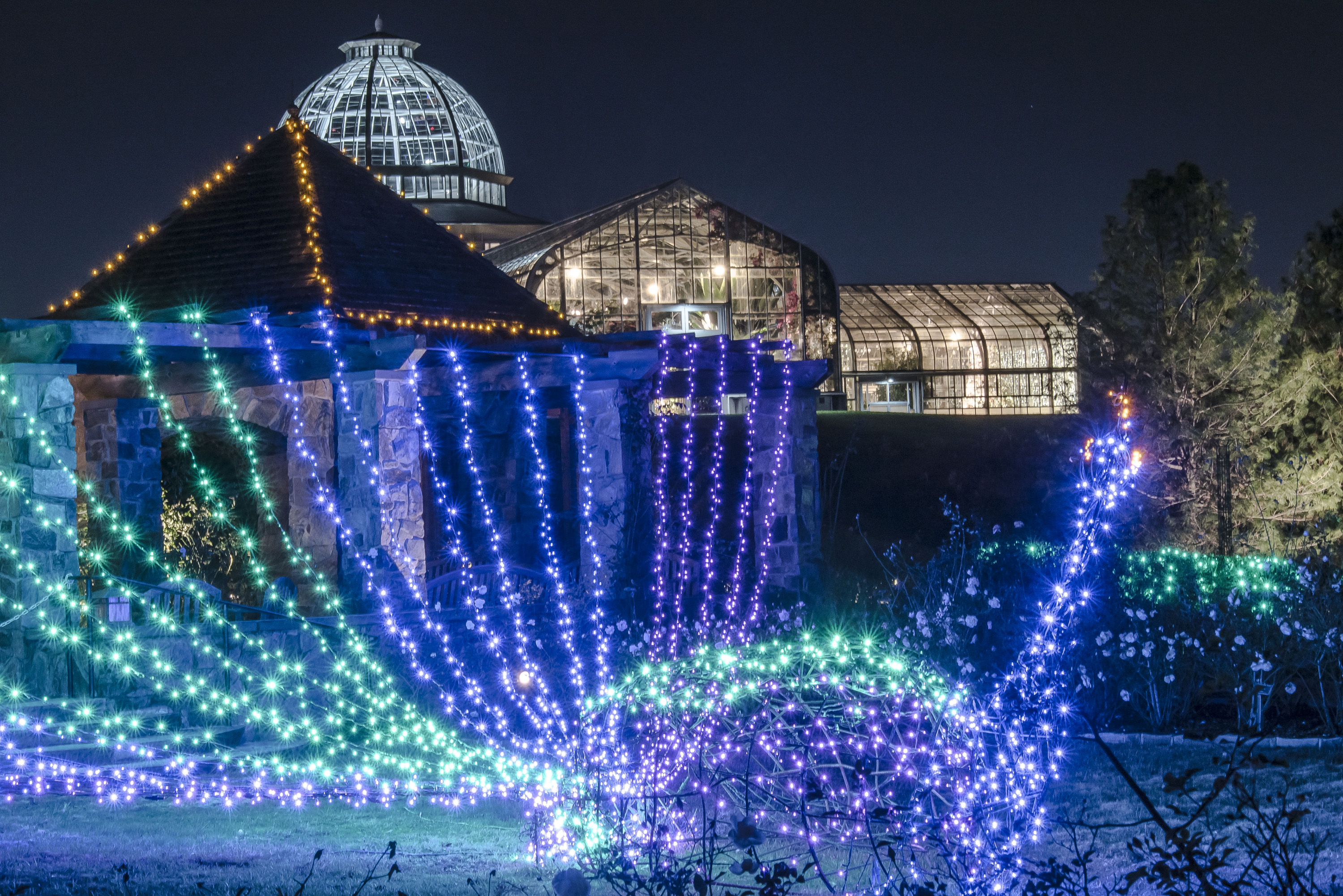 Next up is the peacock. We make it a family tradition to find this guy wherever he is in the Garden. The peacock is also one of the light features that you’ll see included year after year because it’s so popular with our guests. You won’t have to look hard for him this year — he’s perched right in the Cochrane Rose Garden just below the Conservatory and looking regal as ever.