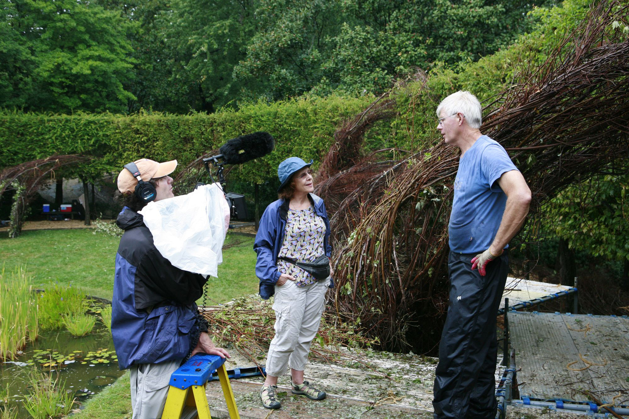 First up is Bending Sticks — you may recognize the sculptor — and the work. Patrick Dougherty, the artist, was artist in residence at Lewis Ginter Botanical Garden in 2011, working over 3 weeks to create the Diamonds in the Rough stick sculpture that still stands in the Anderson Meadow (for a few more weeks). I really enjoyed getting to know Dougherty when he was here for site visits in 2010, as we scouted for sticks, and selected the location of the site for the work. He uses teams of volunteers to help build his work, and I am honored that I got to be one of his many volunteer helpers during this time. He is one of the most passionate artists I know, and offers some great insights about nature, art and life in this movie.