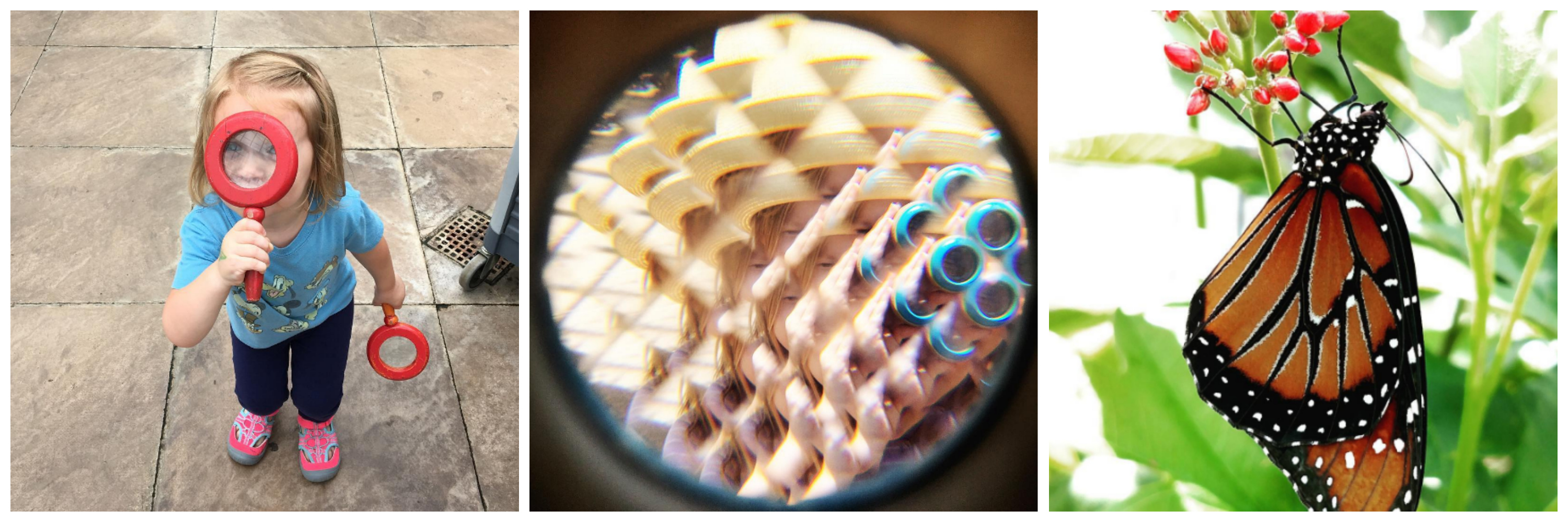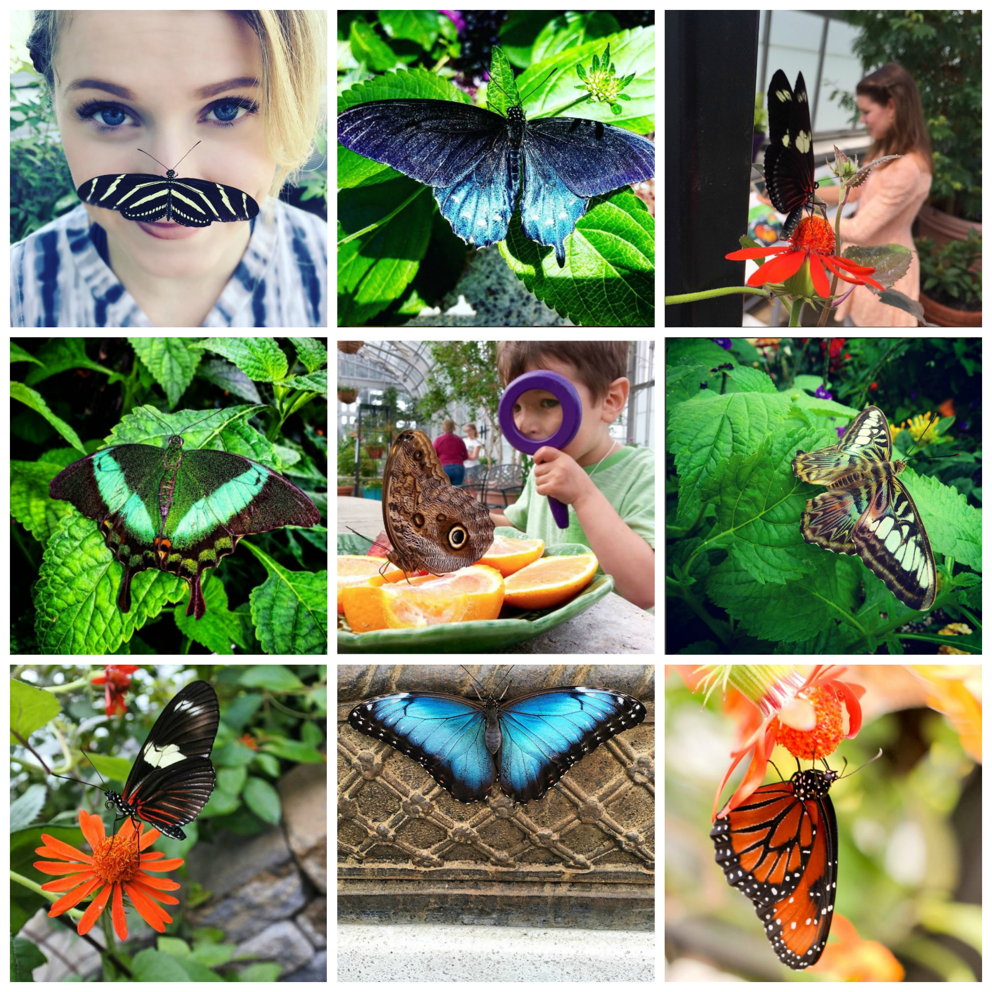 We liked these particular photos because they’re colorful, utilize unique props, and use light in interesting ways. As you can see, we have a soft spot for photos where something unexpected is happening, like when a butterfly lands on a child’s magnifying glass. Photos that show visitors safely interacting with the butterflies are some of our favorites, but we can tell when a butterfly has been grabbed by its fragile wings and placed in someone’s hands for a photo. Please remember not to grab or harm any butterflies in the making of your amazing photos.