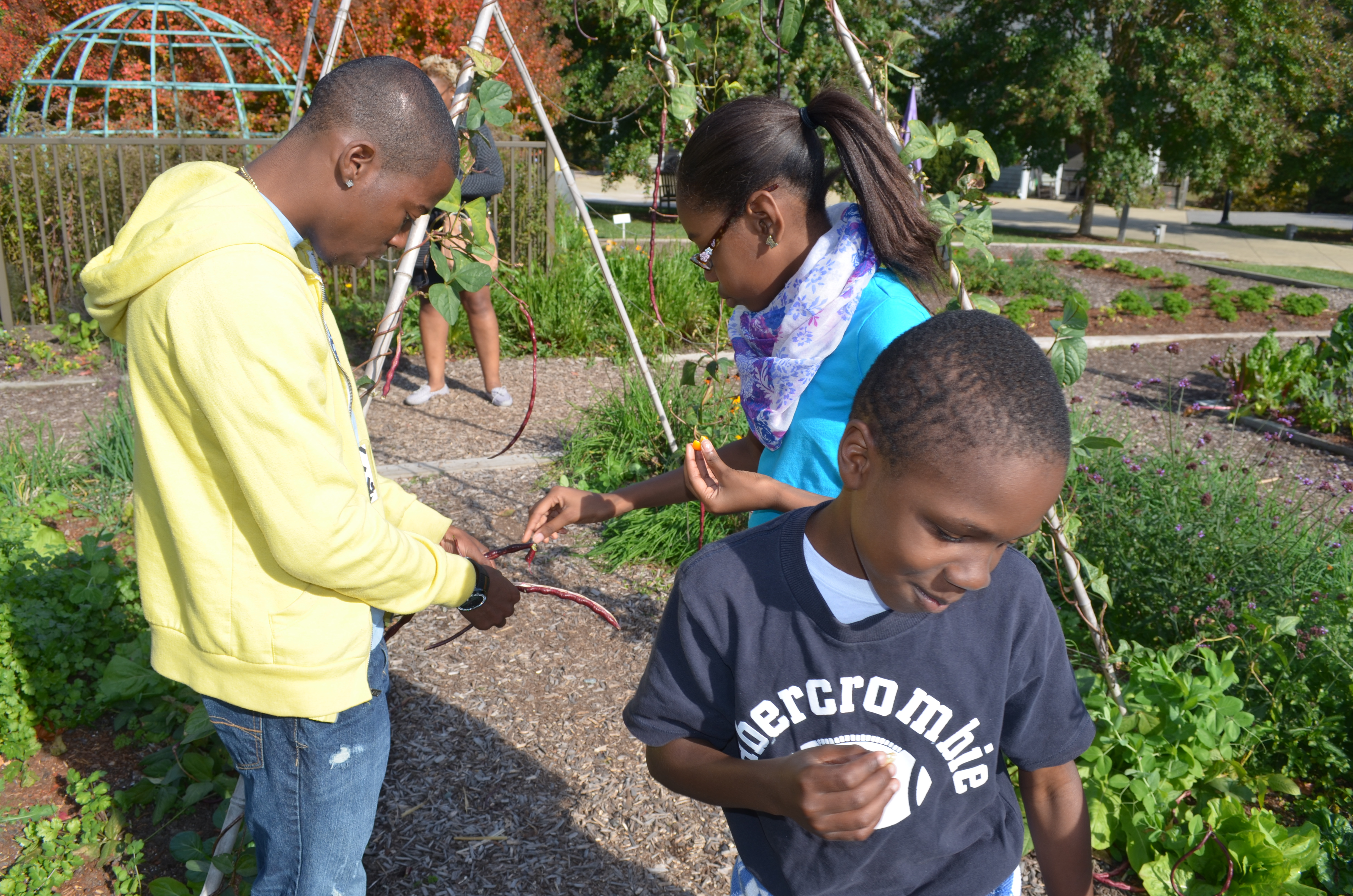 The visit had three components: service (they helped put down mulch in the Children’s Garden), using a dichotomous key to determine the species of a tree, and using scientific method to determine how a tree’s canopy effects soil temperature. The children also tasted peppers and beans, right off the plant.