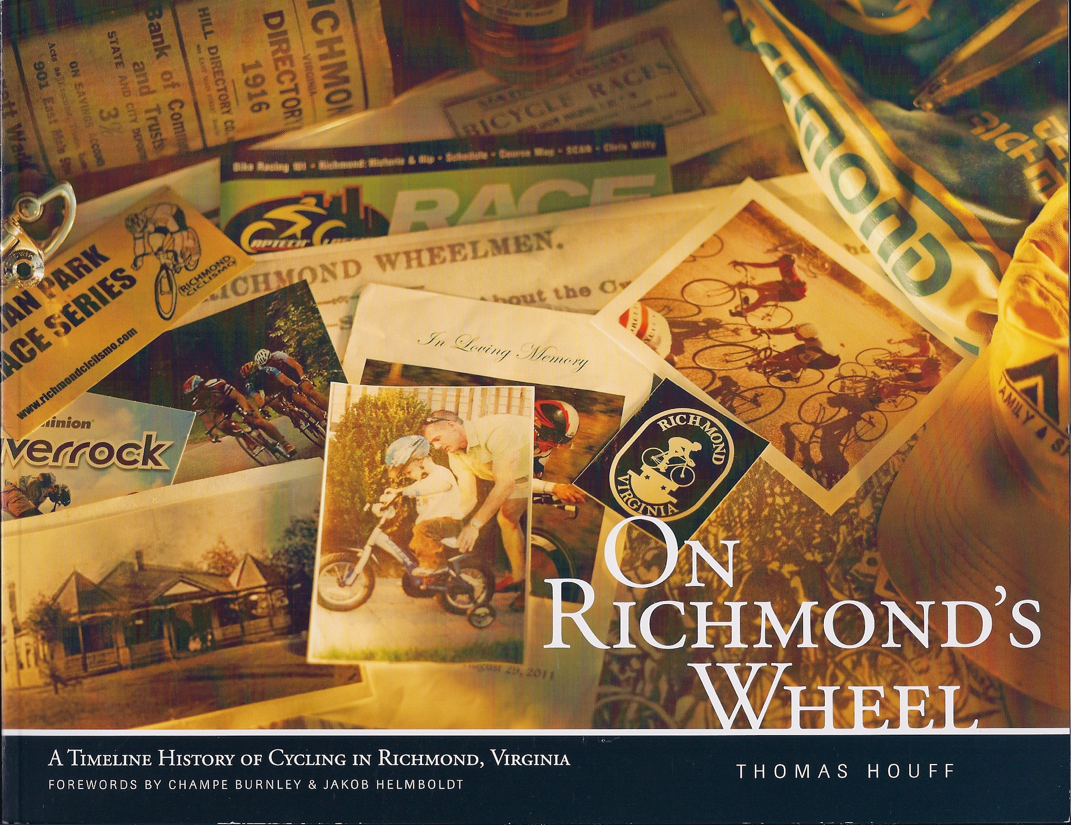 On Richmond’s Wheel: A Timeline History of Cycling in Richmond, Virginia by Thomas Houff is a history of bicycling in Richmond and much more. It will appeal to any Richmond history buff. Richmond entered the cycling age sometime near 1876. The big-wheeled bikes caused quite a stir and fortunately quickly gave way to the “safety” bike invented in 1885. People were quick to see the convenience and speed of cycling over walking, and cycling offered a new social outlet. It’s hard for us to imagine that bicycling was an act of social activism but for blacks and women, it was just that. H.G. Wells said that women’s cycling “… has done more to emancipate women than anything else in the world.” Organized bicycling clubs became quite popular with well-to-do white men; black men formed their own clubs and had their own races since they were prohibited from participating in whites-only events. Lewis Ginter created the Lakeside Wheel Club, along with about 125 of his peers from the Commonwealth and Westmoreland Clubs. The Wheel Club building and property was purchased by Grace Arents, Ginter’s niece, after his death. She renamed the property Bloemendaal Farm and converted the Wheel Club to her home. Ginter was not a cyclist so it seems odd that he would be instrumental in supporting cycling in Richmond. However, Ginter was a very savvy businessman, and we learn from this book that he supported the national “Good Roads” movement, dedicated to improving the nation’s roadways. Ginter had property to sell for home sites and people needed reliable roads to get back and forth from the city to his new Ginter Park development. The League of American Wheelmen was instrumental in the good roads movement and used their influence to agitate on road improvements. I guess you could say that, in biking parlance, Ginter “drafted” on the League’s momentum for road improvements. On Richmond’s Wheel is full of interesting historical and social details plus plenty of photos. The book costs $19.95 and is published by Thomas Houff. Paperback, 87 p., ISBN: 97809858381-0-2.
