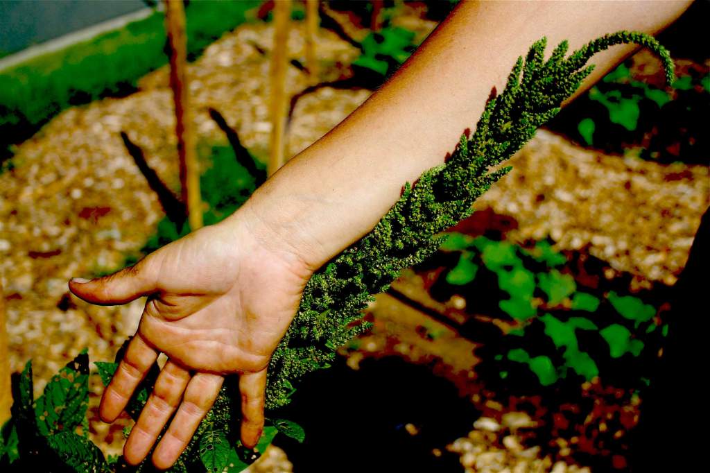 We’ve allowed this Amaranth plant to mature – so far – in the Lewis Ginter Community Kitchen Garden, adjacent to the cucumber patch. We wanted to determine exactly which variety we had – a “grain” amaranth or just the “weedy” variety.