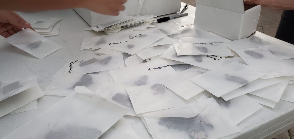 Butterflies in their envelopes waiting to be identified, recorded and packaged ready for their flight to Tucson Botanical Gardens.