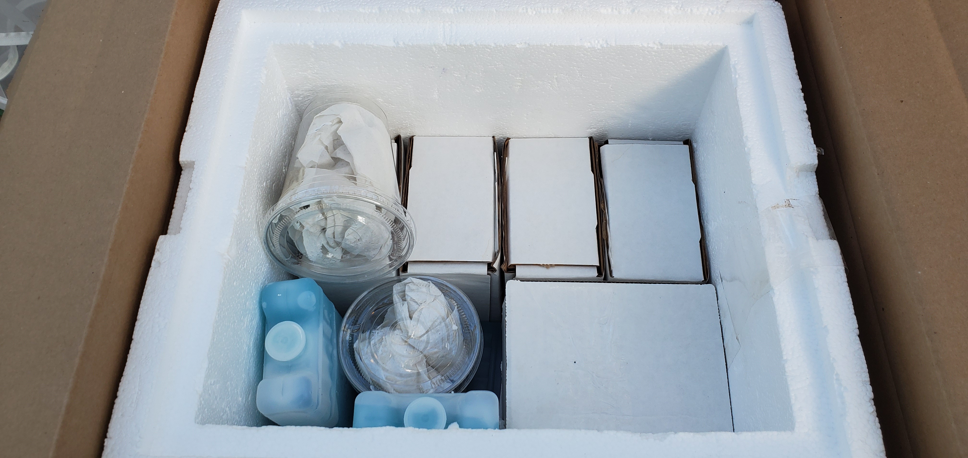 The butterfly-filled envelopes are then placed in small boxes for organizational purposes, and those boxes are fitted into a larger Styrofoam box. We place several ice packs in this larger box, along with insulating materials, in order to keep it cool enough that the butterflies will remain in a state of dormancy. This further prevents injury to the insects on their overnight trip and makes the process less stressful for them. This box is packaged up and sent off via FedEx’s handy overnight shipping. Believe it or not, they actually have a special option for sending live insects (provided you have a permit for that sort of thing, which thankfully, we do!) The butterflies will be in Tucson by the time I’m finished writing this!