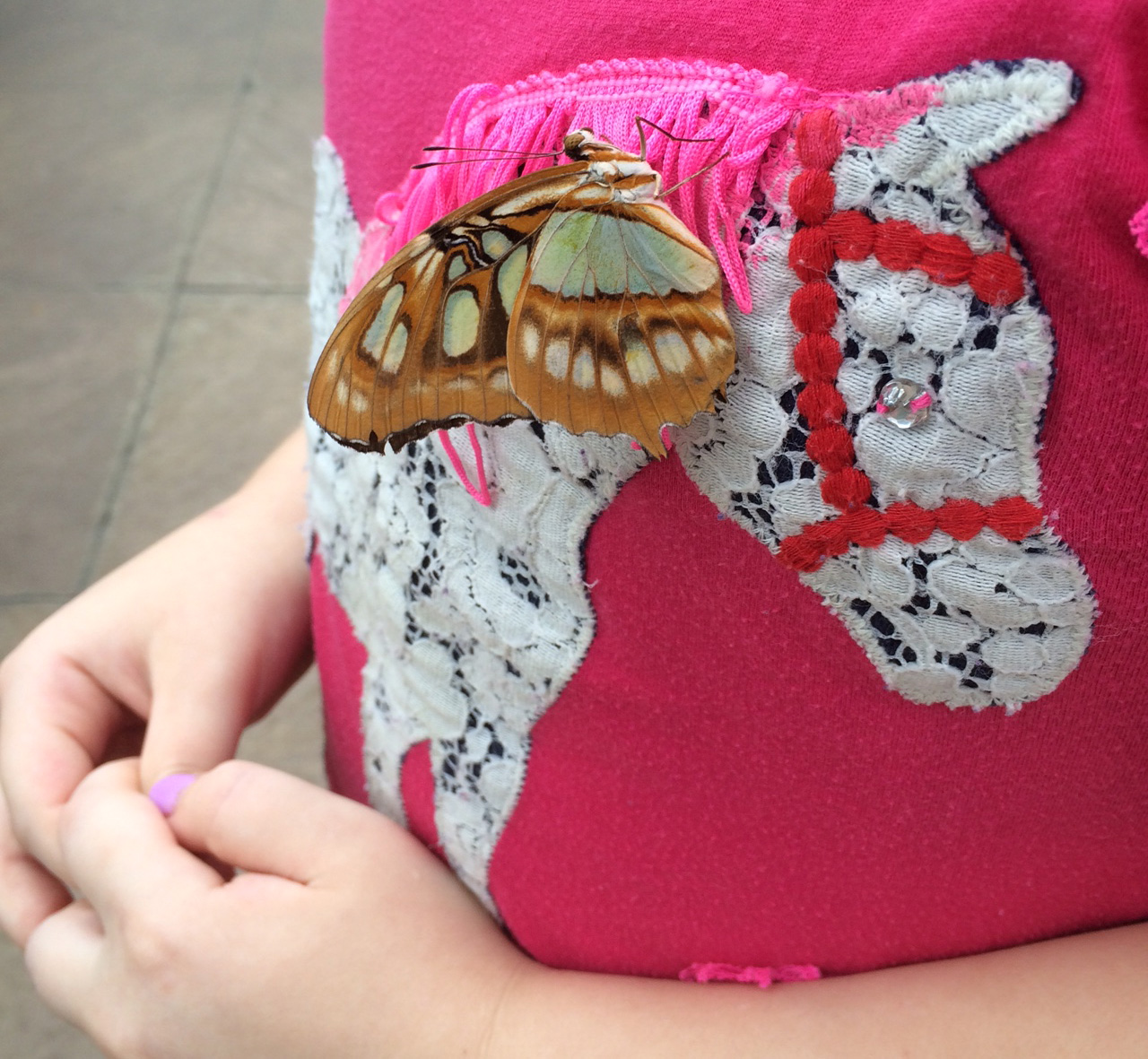 Many of these kids will continue to experience difficult situations at home. There is no quick fix. However, experiences like the one at the Garden give these kids a chance to be kids, to run, to play, to marvel at the natural world, and to giggle at the sensation of a first butterfly kiss. On this day that some very special children learned about butterfly kisses. Hopefully it’s a day that they will remember for a long time to come. I asked camper Samantha what the favorite part of the visit was for her. She replied without hesitation, “When the butterflies get stuck to you. One gave me a butterfly kiss!”