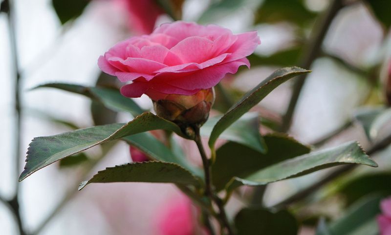 Camellias speak the language of love. A pink bloom symbolizes longing, white suggests adoration and red embodies a flame in one’s heart. Photo by Don Williamson