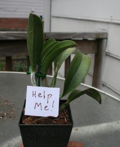 The March monthly library program, Outdoors Inside, will be devoted to orchids. You may have heard we are having “Orchids Galore!” in the Conservatory starting tomorrow and running through April 10. We are offering many orchid-related programs during this time period and we in the library like to do our part for the cause. You may have seen our program advertised as “Living with Orchids”, which seems rather dull now that I’ve had time to develop the program. “Orchids for Dummies” would be an excellent program name, but the book publishers might not like that. So it will be “Can This Orchid Be Saved?” Join us on March 17, at 2 p.m., in the Lora M. Robins Library for some lively discussion. Home orchid grower, Carol Colby, will attempt to teach us the basics of orchid care, including the proper re-potting of a sad little orchid I have in my home. It was given to me some months ago. I’ve watered it on an almost regular schedule, but I am sure I’m not doing all I could for this plant. Carol will hopefully help me turn my sad little orchid (I don’t even know its name) into a blooming beauty.