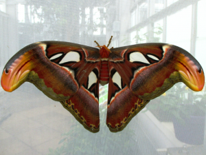 The stockier, hairier body of the Atlas moth (Attacus atlas) is a key difference between moths and butterflies. His antenna are also feathered rather than clubbed.
