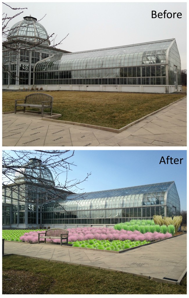• This garden will replace 9,200 sq. feet of existing traditional turf with attractive, low maintenance ornamental grasses, and will showcase sustainable best-practices in one of the most prominent sites on our property.