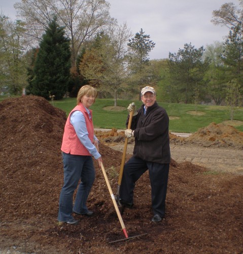 Feedmore President/CEO Fay Lohr (left) and Lewis Ginter Botanical Garden Executive Director Frank Robinson help break ground on the Community Kitchen Garden