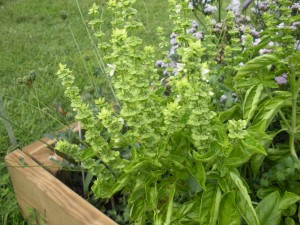 Some of the necessary chores this week included weeding (of course!) and removing the flowerheads from some of the herbs. Apparently, herbs shouldn’t really be allowed to flower as it makes them taste bitter. Regular harvesting of herbs keeps the flowers at bay, and the plant should continue to grow all season. We removed all the flowers from the basil: