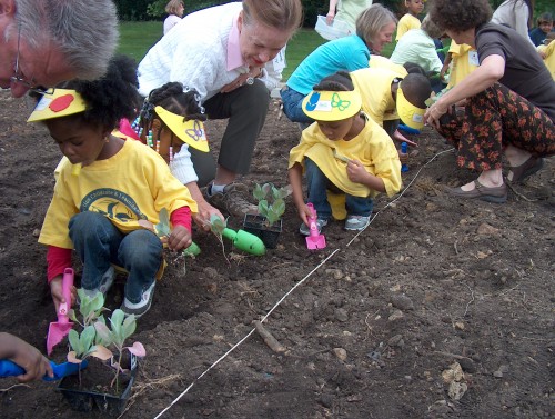 Today was awesome! About a hundred people participated in the celebration planting day this morning, including a group of 20 4- and 5-year-old students from New Directions Daycare.