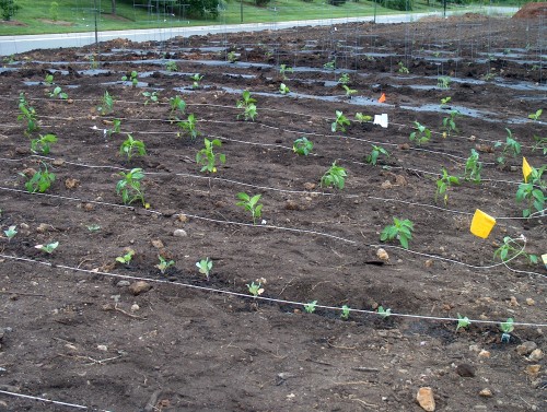 Today we planted about 15 rows of plants, with each row having about 10-15 plants. We had two rows of cabbage seedlings, 5 rows of assorted bell peppers, 1 row of eggplant, and lots of rows of tomatoes. Most of the plants take 70-80 days to mature, but one variety of tomatoes – Early Girl Hybrid – matures in about 50 days. Just a month and a half before we can reap some rewards! Additional plants and seeds will be planted in the next few days, and throughout the season.