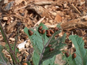 Last week I also mentioned the mystery bug that is attacking some of the eggplants. One reader helpfully suggested that it might be a flea beetle, but I’m not sure (although I am definitely no expert). I managed to get a photo so hopefully someone out there can confirm what it is!