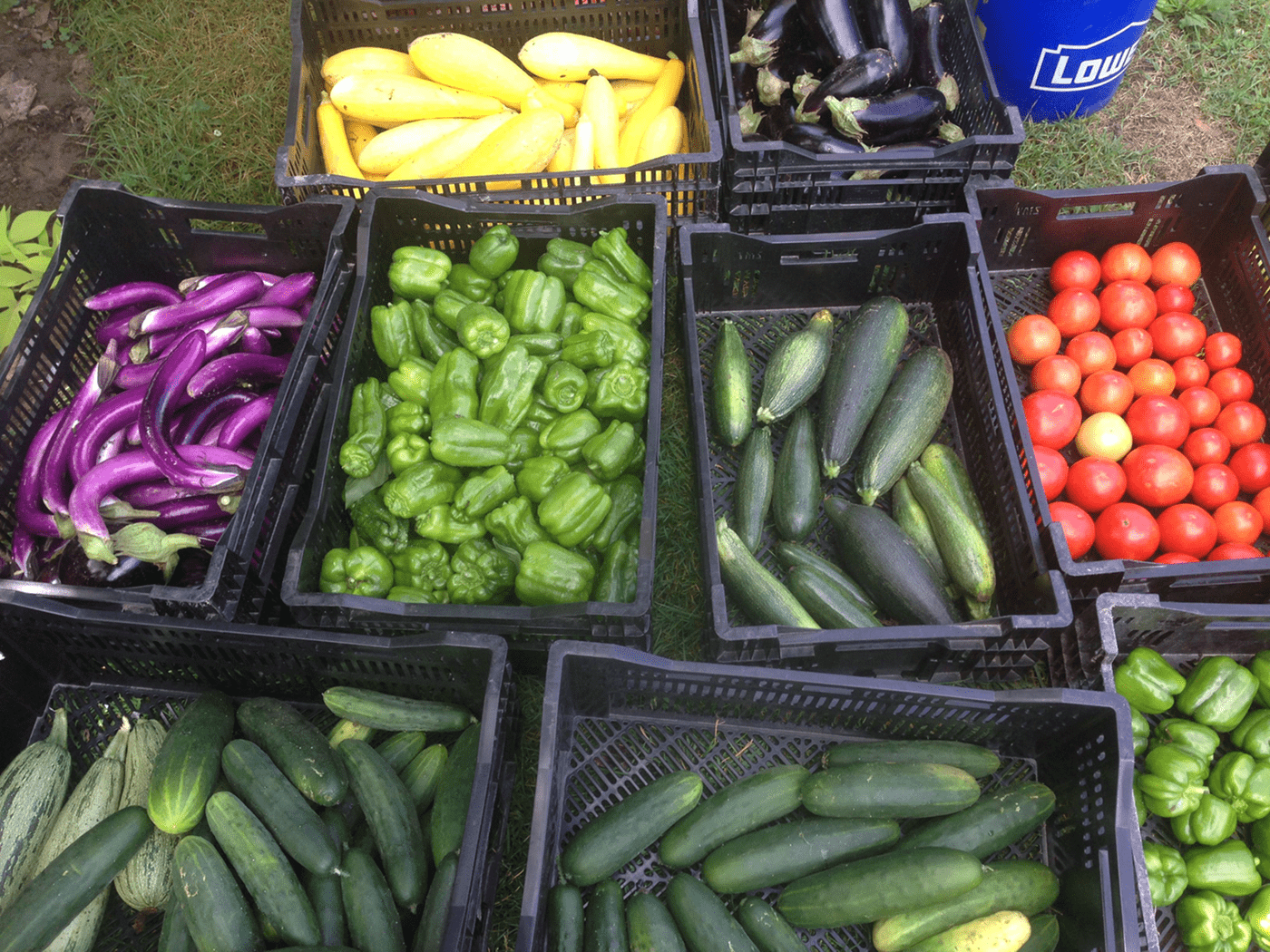 A summer harvest typically includes cucumbers, peppers, squash (like zucchini) and tomatoes. Some will be used fresh and some will be cooked in recipes.