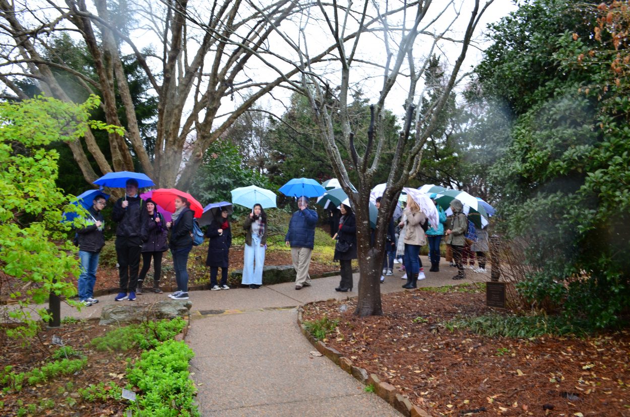Japanese high school exchange students visited Lewis Ginter Botanical Garden with their host students on a very rainy first day of spring. The students are part of an exchange program between Clover Hill High School (Chesterfield County Public Schools) and Municipal Urawa High School (Saitama, Japan).
