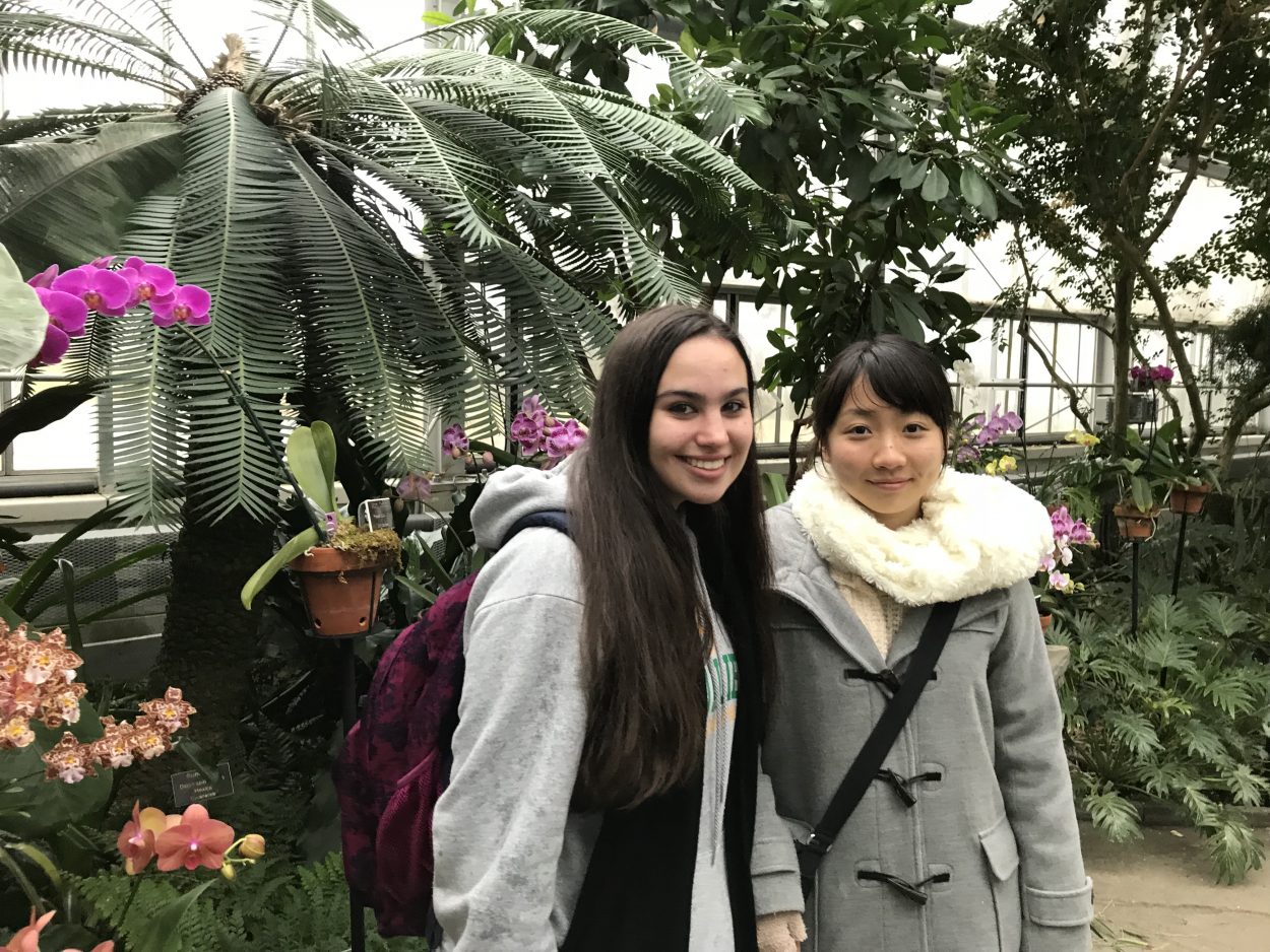 Honoka Sato and Olivia Appelrouth in the Orchid Wing at Lewis Ginter Botanical Garden. Lewis Ginter works to connect people through plants to improve communities.