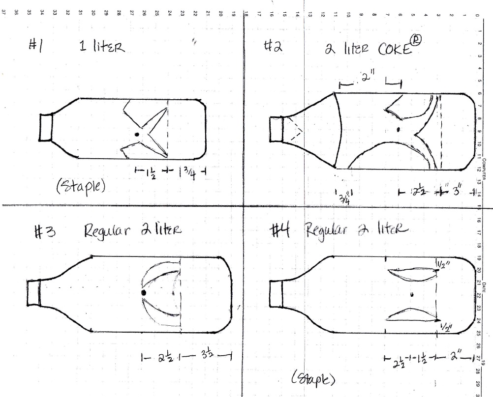 - Score and remove label. Cut off the end of soda bottle; start with an Exacto knife and then finish cutting with scissors.
