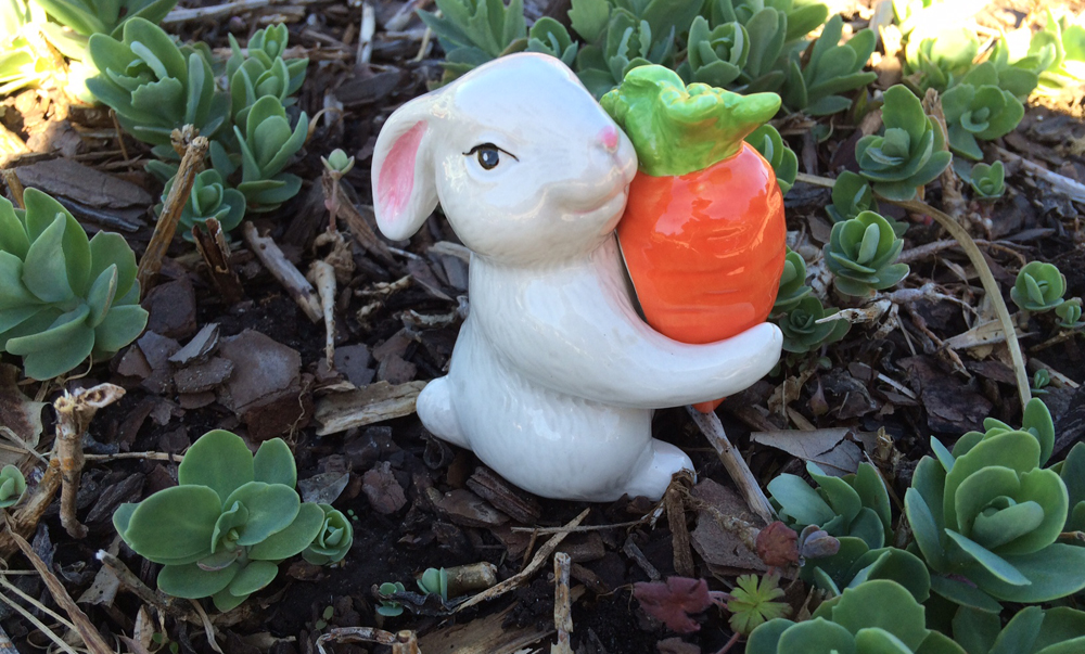 If this irresistible ceramic bunny offers to share his larger than life carrot with you, don’t be surprised! It’s a pepper shaker. Guess who’s filled with salt. $14.95