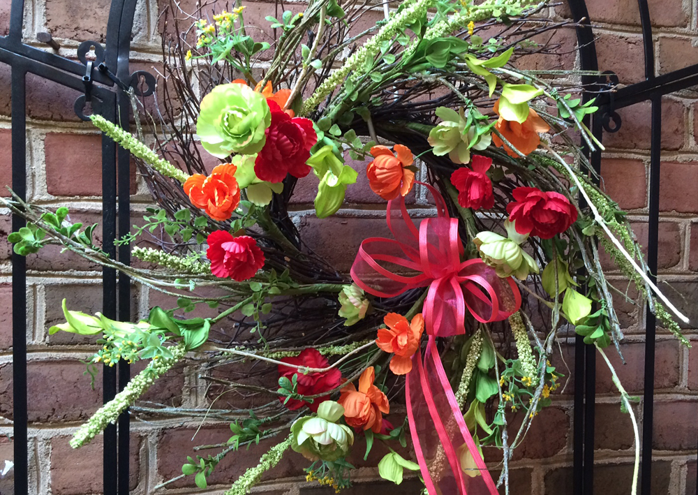 Celebrate the season with a pretty silk wreath! Imagine one gracing an elegant tablescape or dressing up a doorway (inside or out). Festooned with a matching bow and available in a rainbow of colors, there is sure to be one that strikes your fancy. $38