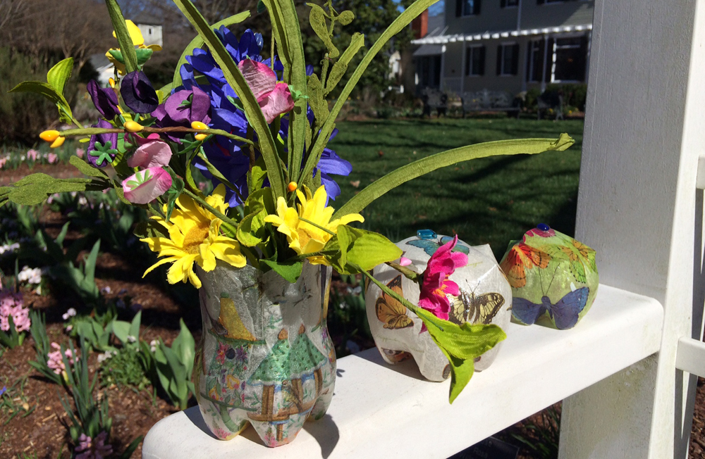 Look closely. These are plastic water bottles, ingeniously reinvented by industrious women in South Africa. Decorated with decoupage, they double as a vase, herb pot or pencil cup when open. Fold the plastic petals in and they transform into a clever container. Each one is unique and comes with a photo and thank you from the entrepreneur your purchase helps to support. Small $13.95, large $16.95 (holds a 4-inch pot).