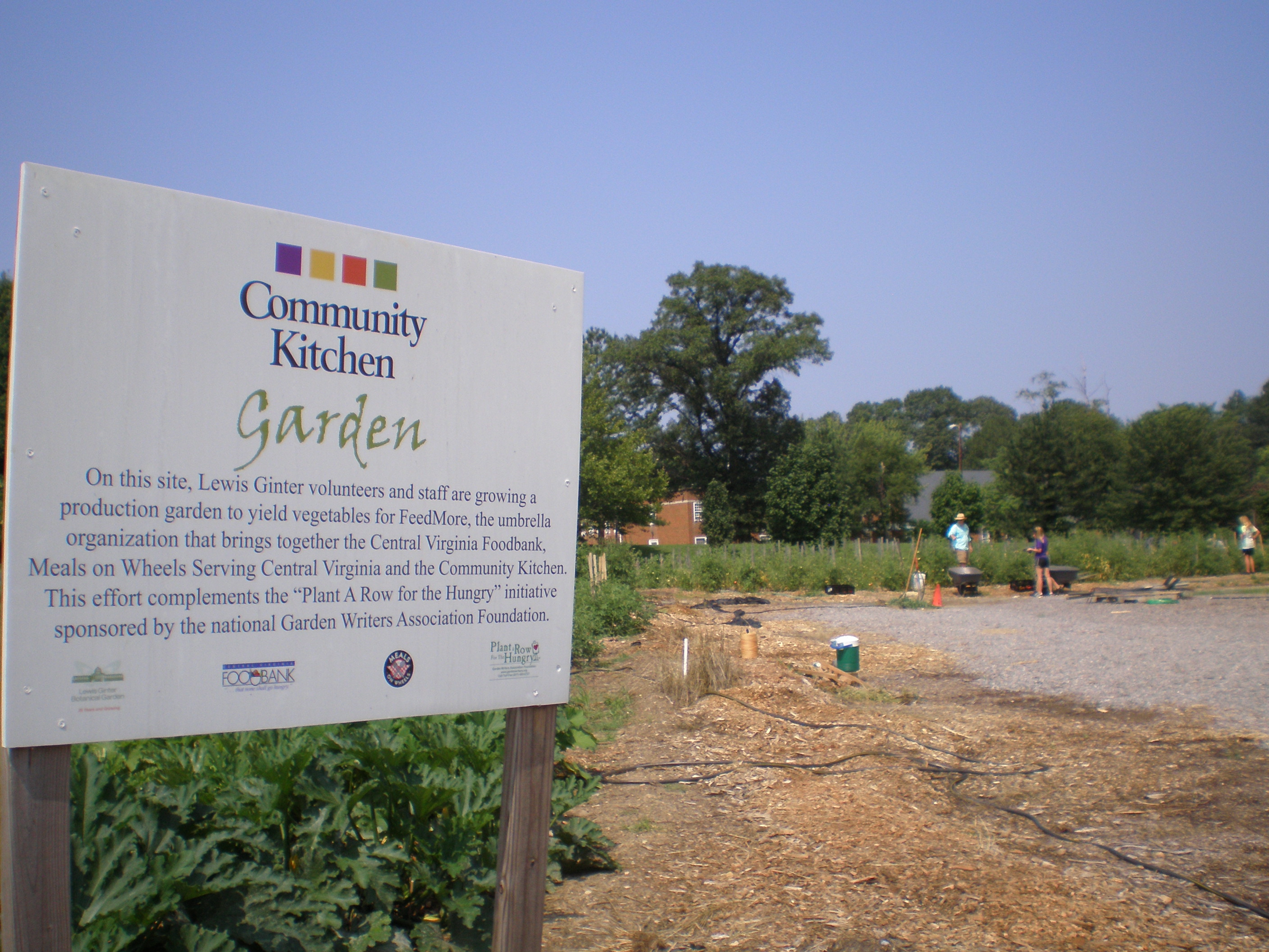 If you read this blog on a regular basis, then it is no surprise to you that here at the Garden (with the help of our partners — HandsOn Greater Richmond, Carmax, FeedMore, The Central Virginia FoodBank and Meals on Wheels of Central Virginia) we have a goal of growing 10,000 lbs of fresh vegetables each season for the Community Kitchen, who in turn prepares meals for children in low-income areas and for the home-bound elderly and disabled. The Community Kitchen Garden uses mostly volunteer labor (see photos) as does the Community Kitchen. Often, even if people can get to the grocery store, the produce there is not fresh and it’s more expensive than other calorie-dense foods. With the Community Kitchen’s prepared meals, both children & the elderly get nutritious meals — that are filled with the veggies we grow, and already prepared for them. And since our garden is less than 5 miles from the kitchen, it doesn’t even have to travel far, and we don’t have to spend alot resources to transport it.