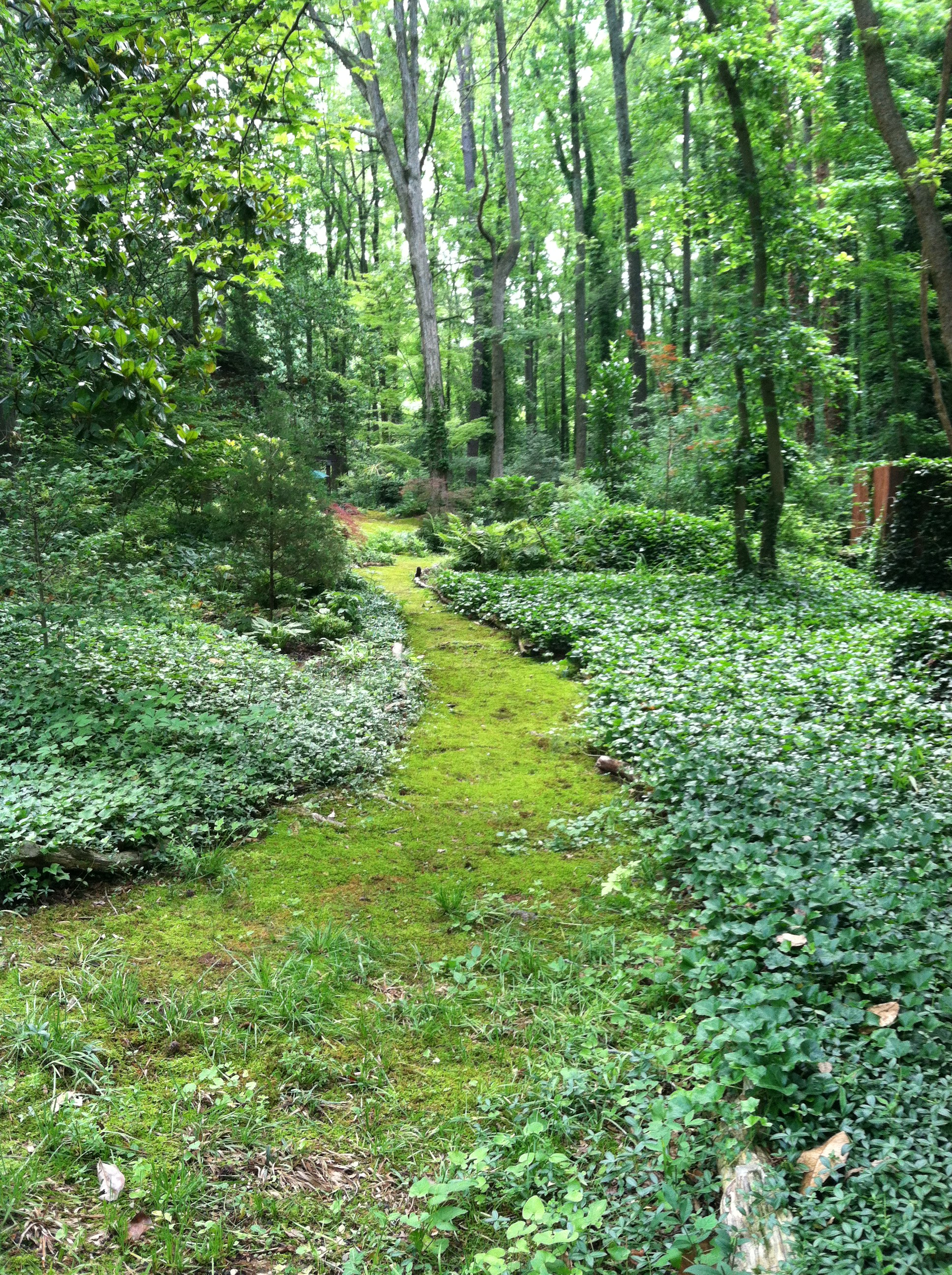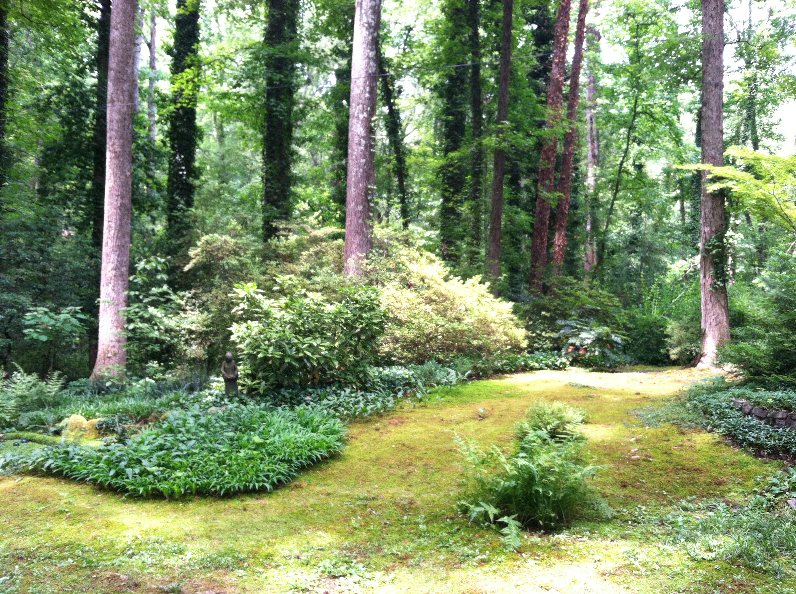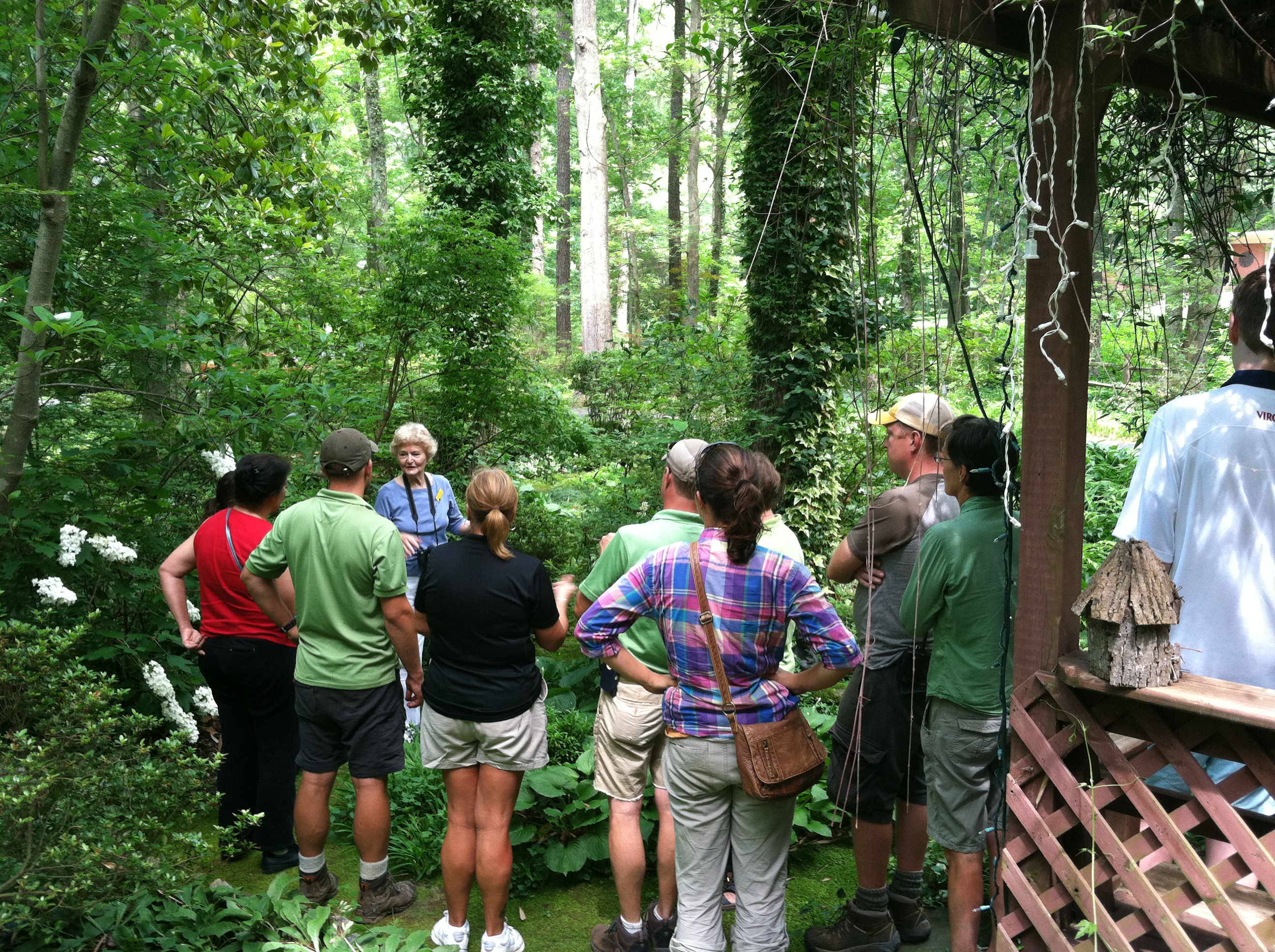 A couple of weeks ago, the Horticulture staff from Lewis Ginter Botanical Garden went on a wonderful field trip to Norie Burnet’s moss garden, Eden Woods. After finding that her 4-acre wooded lot in Bon Air was too shady to grow grass, Norie decided to nurture the moss that was naturally occurring, and she has been doing so for almost 25 years.