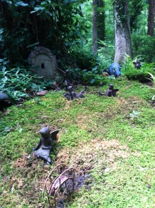 Norie is definitely a gardener with an artist’s eye. She creates interest with sweeps of varying textures and endless shades of green. She spoke to us about balancing textures, colors, and shapes in the garden. She also adds whimsy to the garden by tucking fairy houses into shady corners.