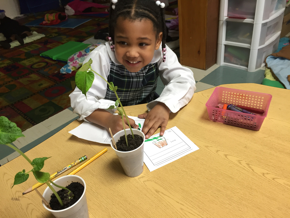 A student in Catherine Hoang’s class planted the seeds, tended to the sprout’s needs, and then made a drawing of the plant. In a multifaceted project like this, children learn many skills, as well as how to be a good steward of the earth.