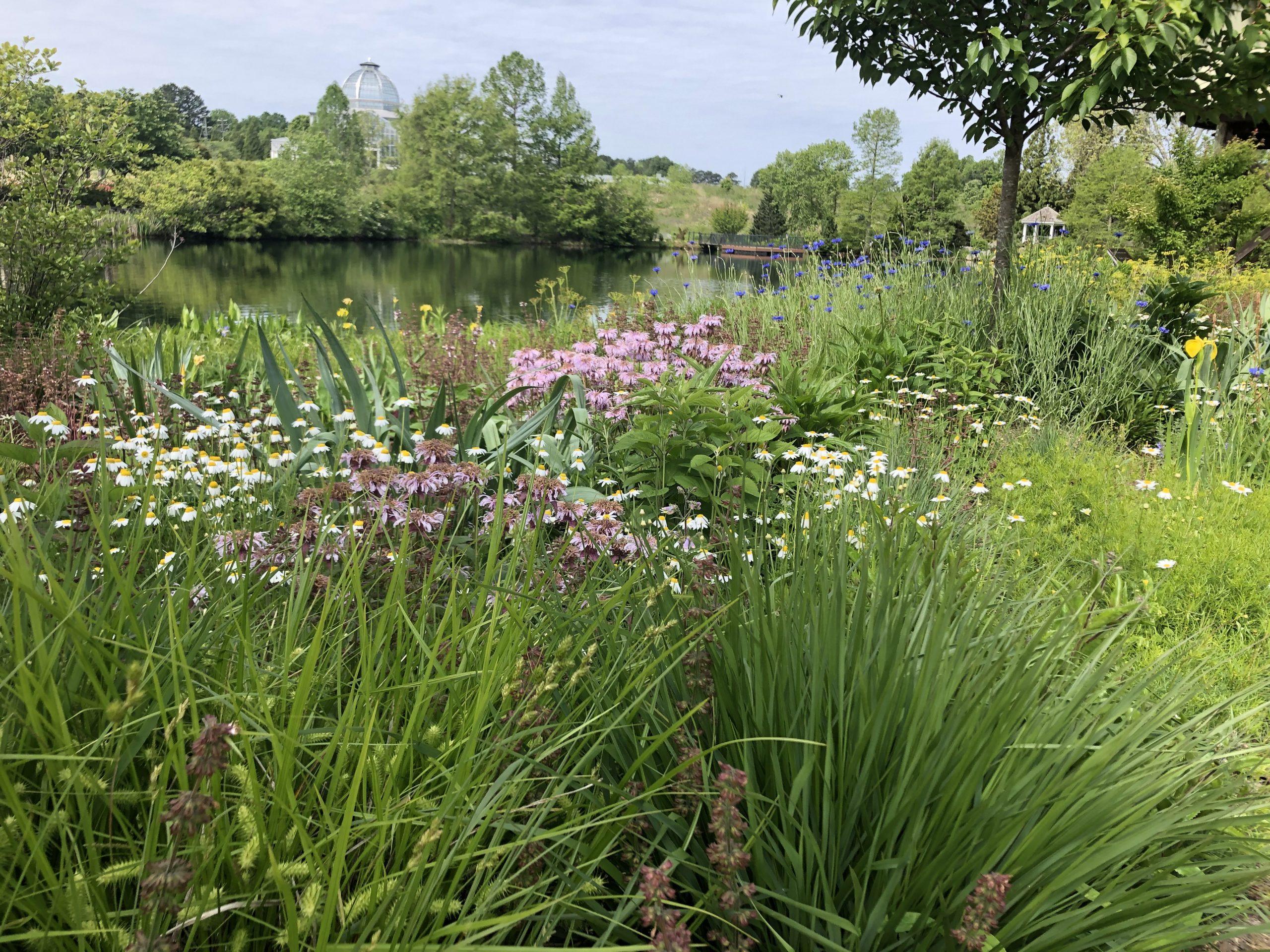 Native plantings like this wildflower meadow along Lake Sydnor help improve water quality, locally and in the Chesapeake Bay.