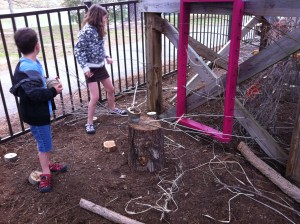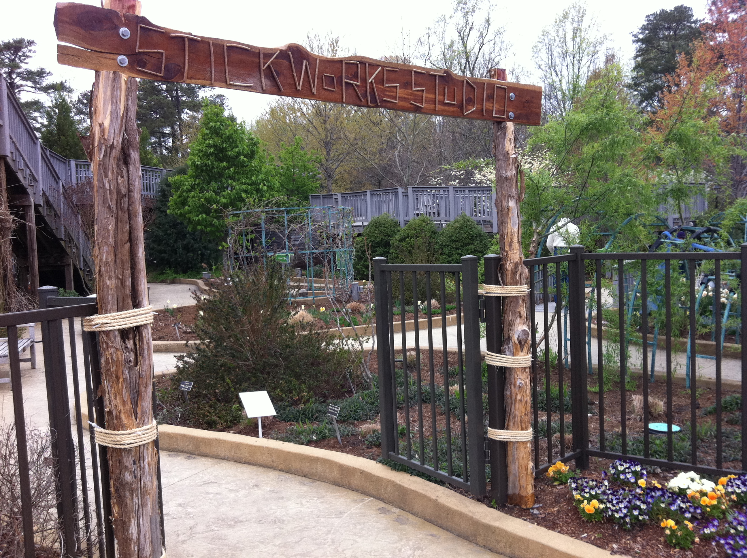 Out of the sunshine and heat, in these cool nooks, my kids are inspired and hurriedly rush to create their vision. StickWork studio is an idea that immediately resonated with them but their sculptures are simple and made in minutes, not days, only to be taken apart by others and reworked the next time we visit. Next week, artist-in-residence, Patrick Dougherty will arrive in Richmond and start harvesting sticks that he will use to create a one-of-a kind stick sculpture/weaving here in the Anderson Meadow at Lewis Ginter Botanical Garden. On Thursday, May 5th, he will start to build the infrastructure of the sculpture that will transform the hillside below the Conservatory into a work of art that will take 3 weeks to create. I can’t wait to see how Patrick Dougherty is inspired by the beauty of the Anderson Meadow and the young red maple saplings and sweet gum he chooses to sculpt with. And, well if he runs out of inspiration, he can always cross the Lotus Bridge to the Children’s Garden and see what the little ones are working on!
