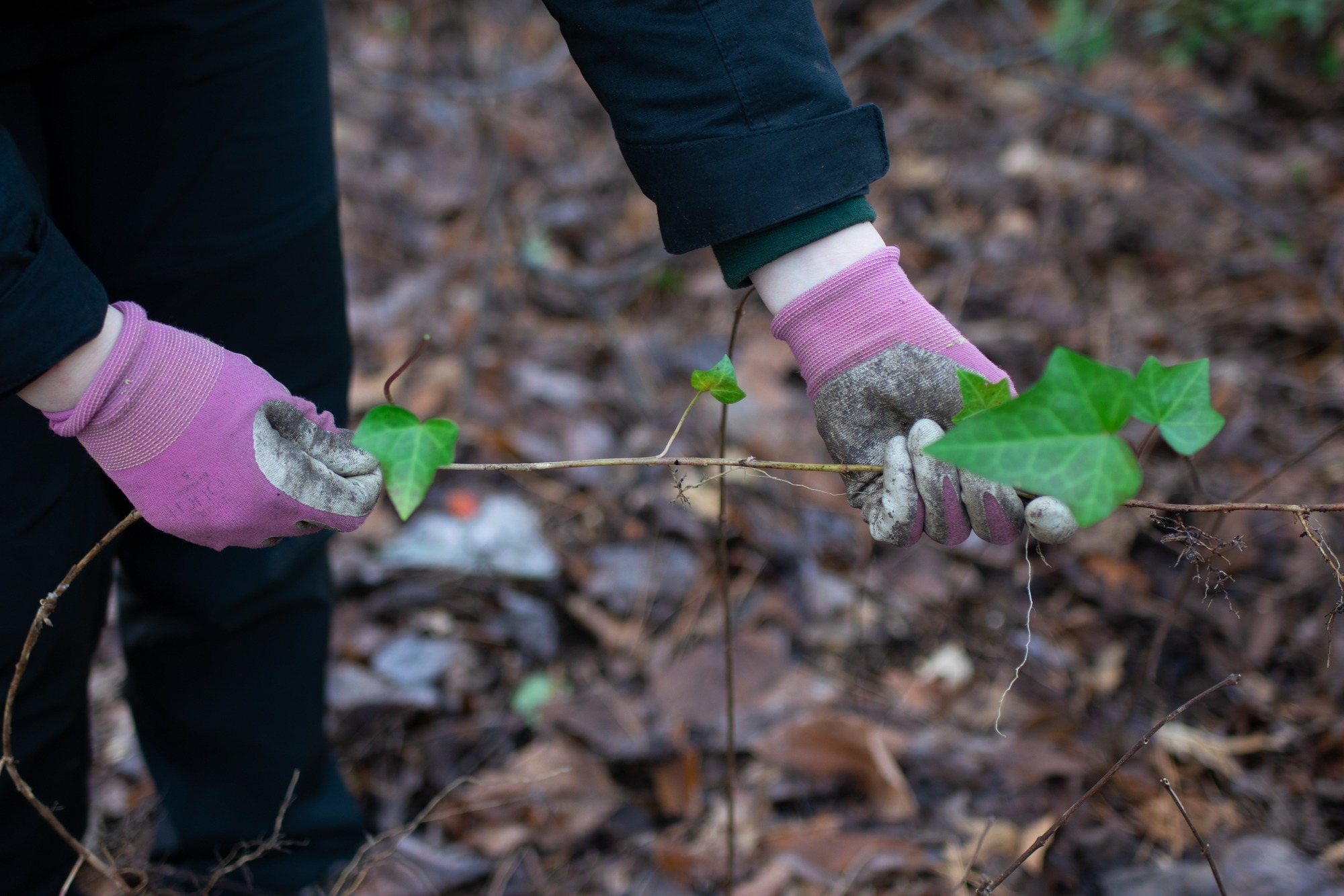 Biocontrol: Goats and sheep can be a great way to keep invasive plants in check. According to Kristi Orcutt, owner of RVA Goats, small amounts of English ivy can be grazed by goats. If there are larger infestations, it is safer for the goats if the ivy is supplemented with other plant cuttings or hay. While this will prevent English ivy from climbing up trees and reduce its environmental impact, it won’t completely remove it from an area.