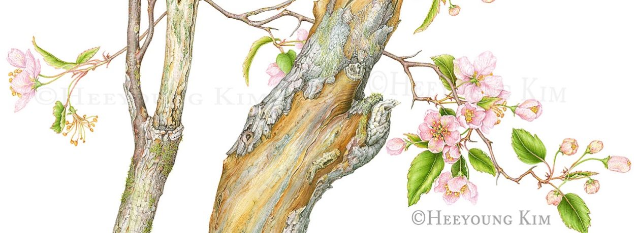 Mar 29th, 2019 Heeyoung Kim-Prairie Crabapple Malus ioensis-watercolor-for Lewis Ginter Garden banner crop by Megan Compton