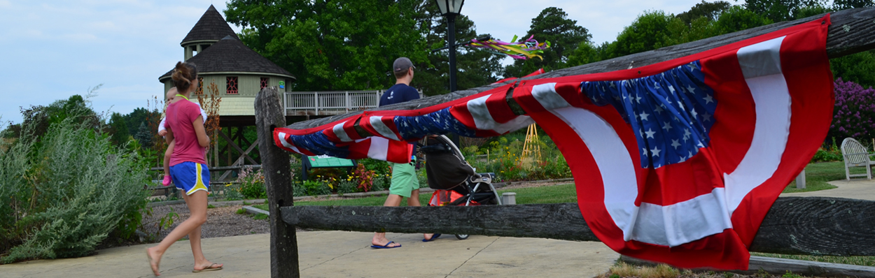 July 4 at Lewis Ginter Botanical Garden red white and blue bunting