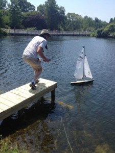 Remote-controlled model boats on Sydnor Lake on Father's Day