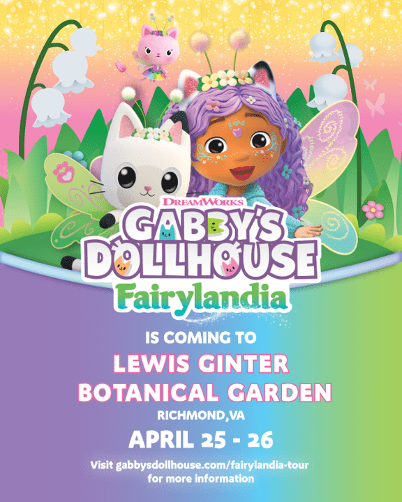 With a mission to help young minds grow and inspire natural curiosity, the Gabby’s Dollhouse Fairylandia visit to Lewis Ginter Botanical Garden will offer character meet and greets with Gabby* in her all-new, Fairylandia-themed attire and garden-themed craft activities. Featured crafts include a Kitty Fairy crown and a terrarium, and each child will be gifted an activity booklet including temporary tattoos, watercolor sheet, and button to commemorate their visit.
