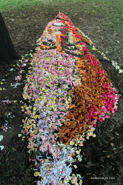 His subject is Grace Arents, Lewis Ginter’s niece and original benefactress of the Garden. He’ll use broken discarded terra cotta pots and small gravel found at the Garden. The location is on the lawn near the front of the Conservatory. Given that this is ephemeral “pop-up” art, the sculpture will be on display as long as the conditions allow. If the image eventually becomes distorted due to materials shifting, it will be removed; however, given the weight of the materials, it should remain on view for a good length of time.