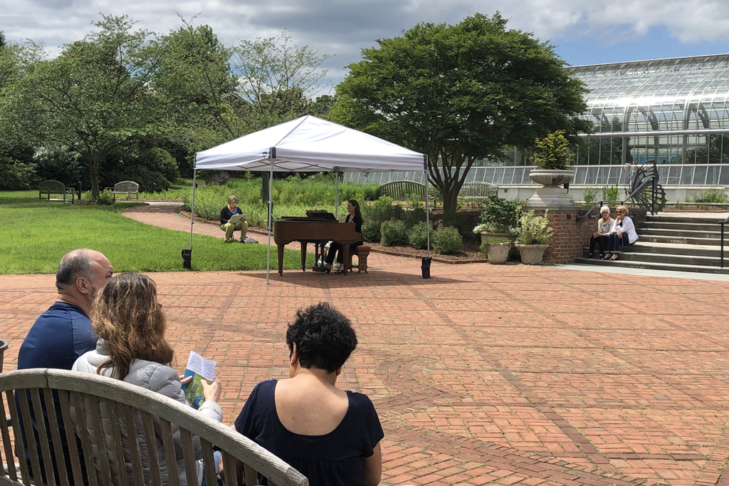 Pianos are located in front of the Conservatory, in Flagler Pavilion and Lucy Payne Minor Pavilion