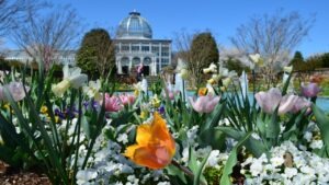 Nov 27th, 2023 tulips and daffodils in the Fountain Garden at Lewis Ginter Botanical Garden with Conservatory by Heather Mendicino