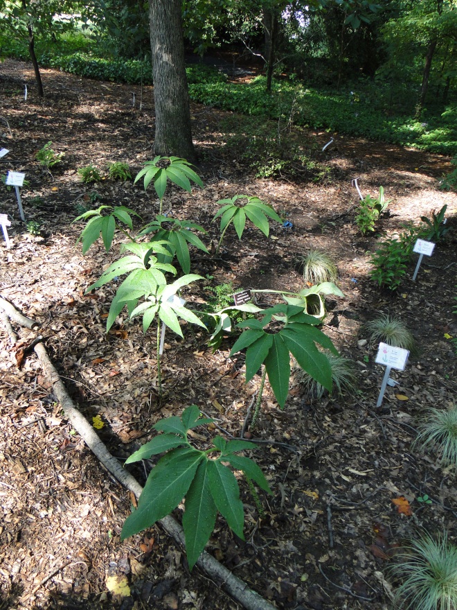 One interesting specimen planted is the voodoo lily (Sauromatum venosum). It is a bulb that first puts out its fly-pollinated flower and then sends out its foliage.