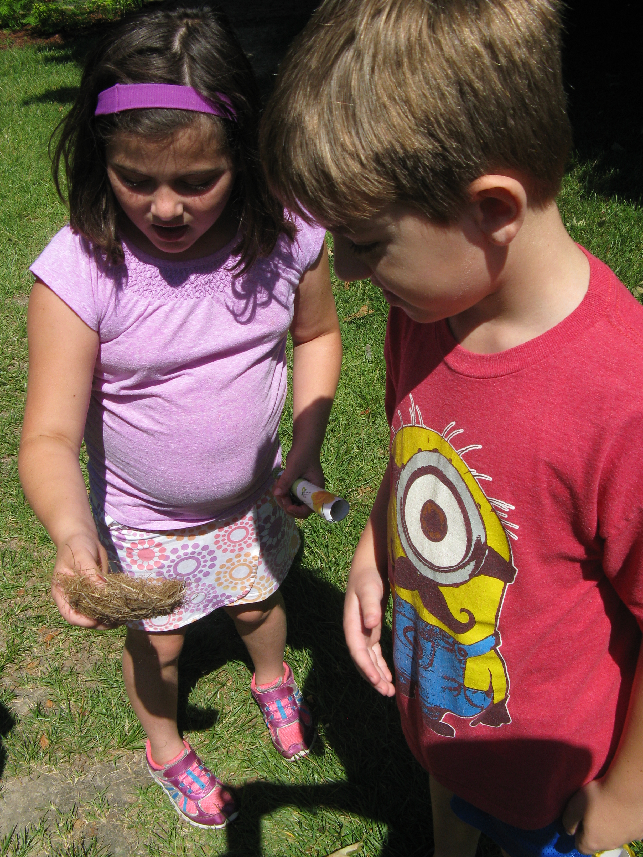 And believe it or not, just like the story, we found a nest of new hatchlings in the Grace Arents Garden! Using the app, we discovered that it was a mourning dove with two babies. As if that wasn’t enough, we also found the remnants of a nest on the ground a few feet away, which we examined up close.
