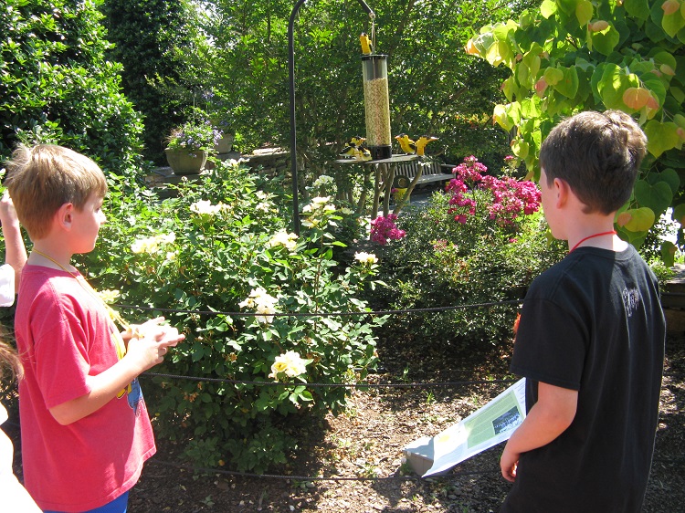 It’s one thing to take a group of adults on a tour of the Garden, watching birds and taking the time to identify different species. It’s quite another thing to bird watch with a group of rising second-graders, third-graders and fourth-graders, especially when they’re already dressed in swim suits, ready to splash their way through Water Play. Good thing there’s an app for that!