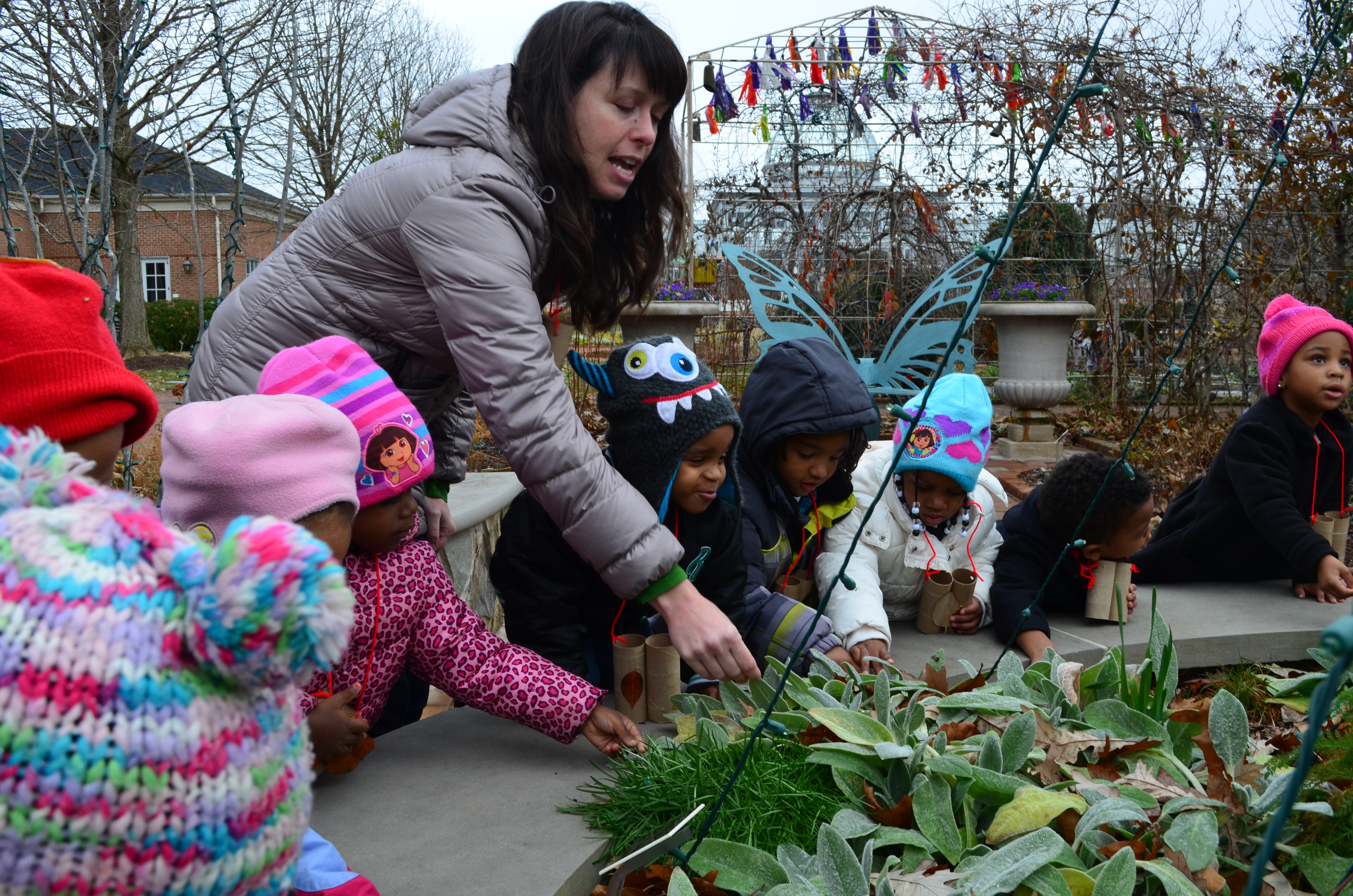 My husband, Dr. Holland, happens to be the teacher for this class, so I was excited to meet his students and share Lewis Ginter Botanical Garden with them. Seeing the Garden through a child’s eyes is something special. None of the children had been to Lewis Ginter Botanical Garden before, and there was so much to take in. If you haven’t been here before (and even if you have) the Conservatory makes quite an impression. One little girl squeeled with delight, “Ohhhhhh a castle!” And all the Children looked up and ooh-ed and ahhh-ed.